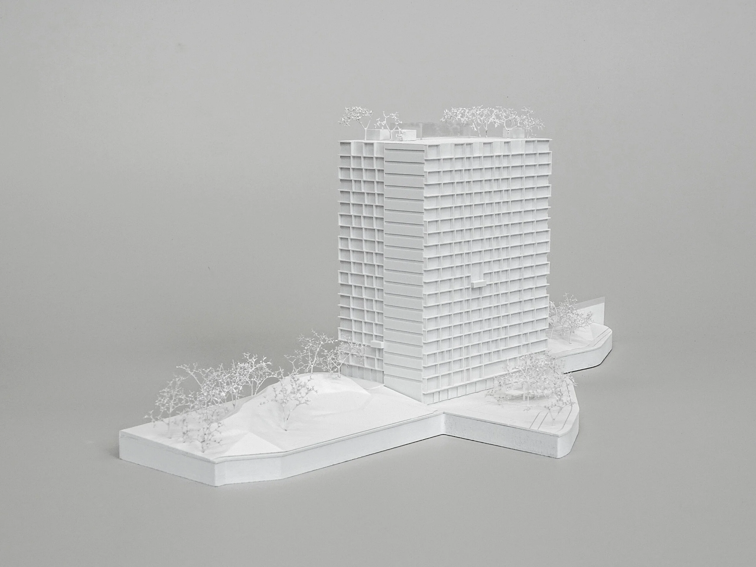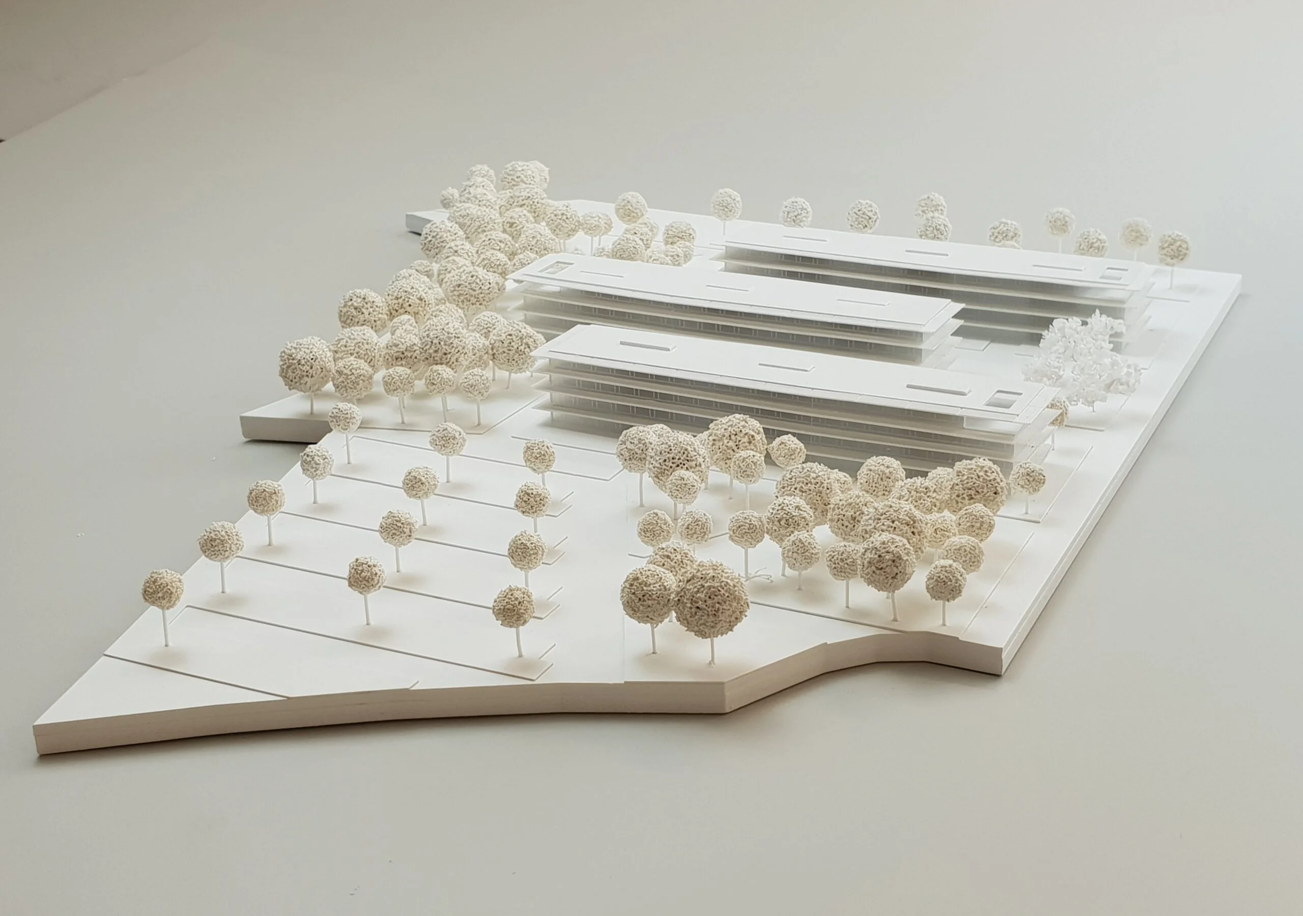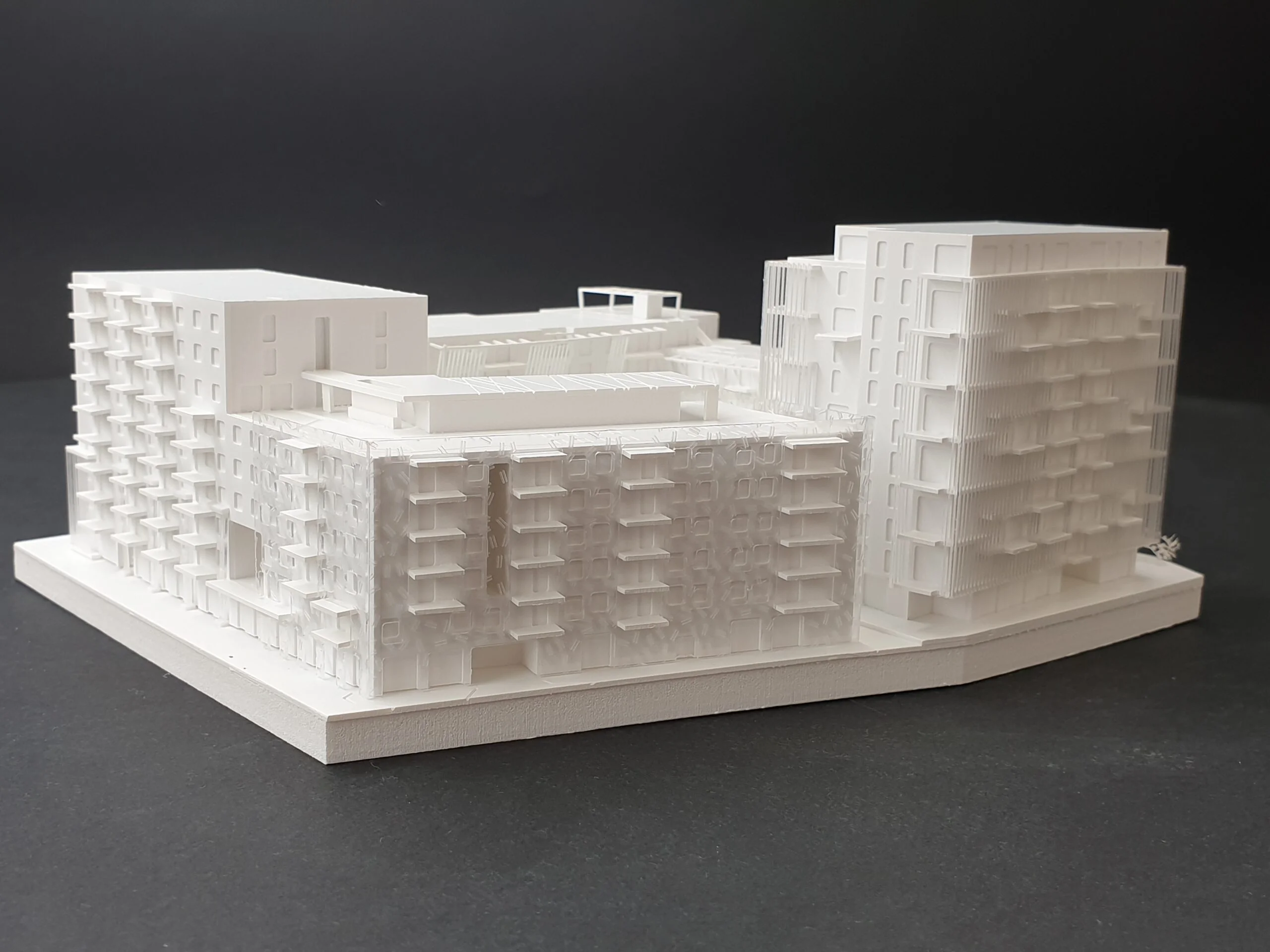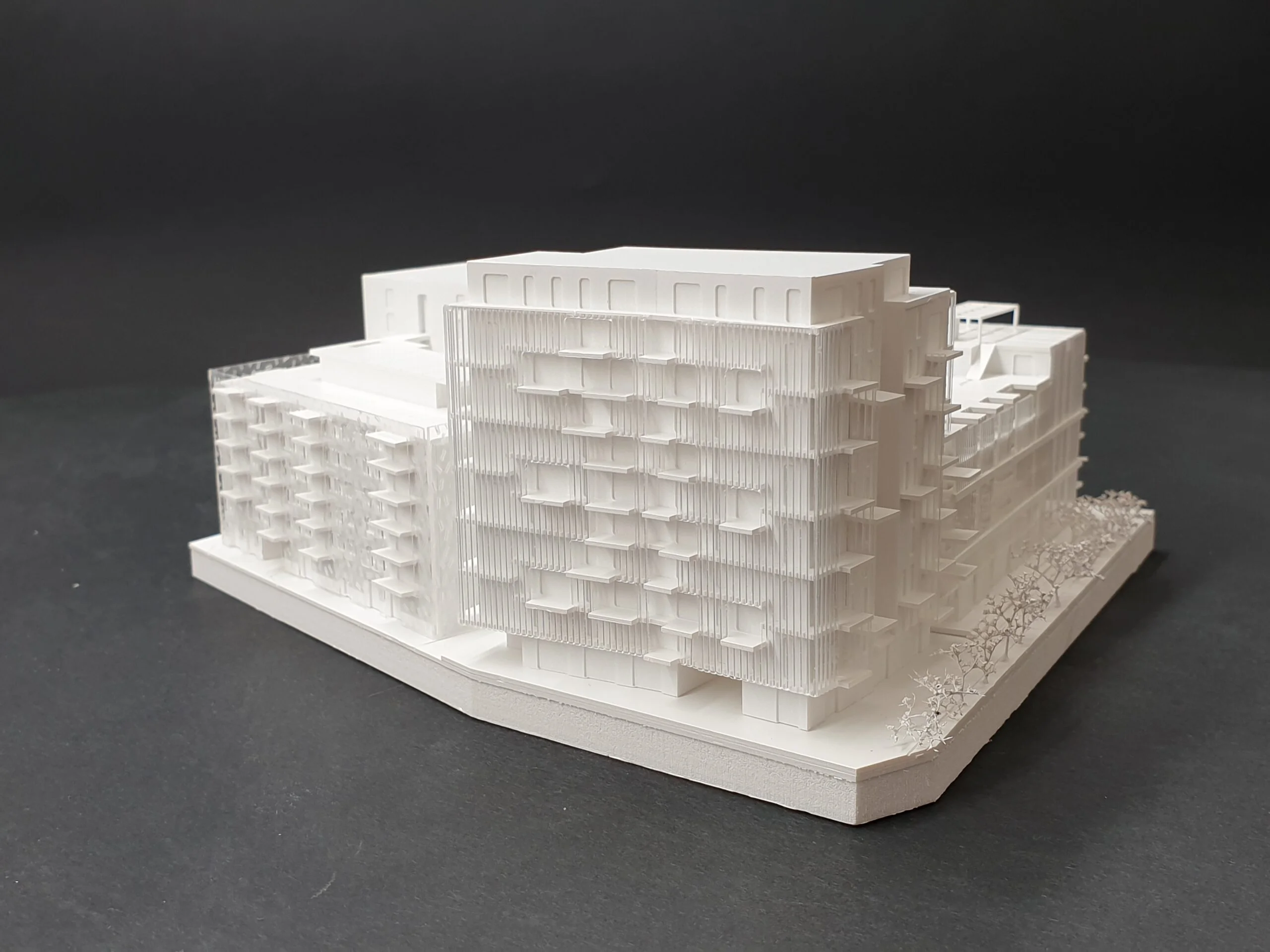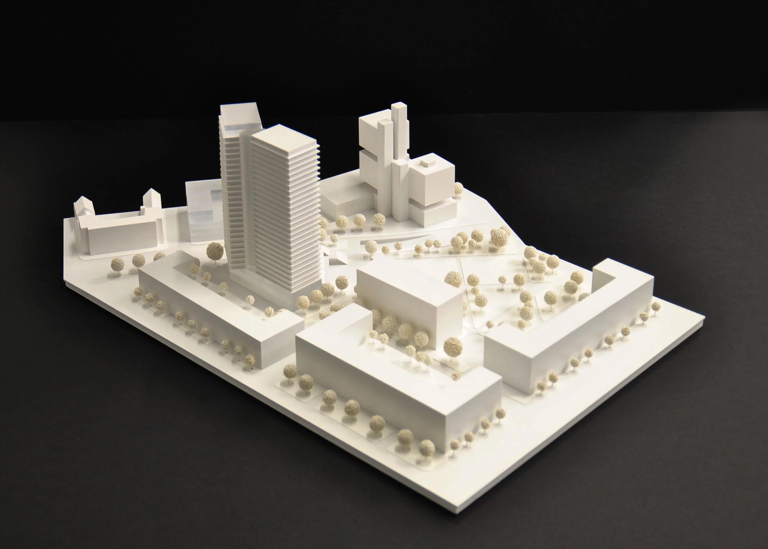 Wettbewerbsmodelle können je nach Zielsetzung reduziert oder stärker detailliert ausgeführt werden. Schon eine präzise Grundform mit klarer Linienführung präsentiert den Entwurf überzeugend und ermöglicht eine schnelle Orientierung – ideal für frühe Bewertungsrunden und anonyme Jurysitzungen. Ein höherer Detaillierungsgrad macht zusätzliche Qualitäten sichtbar: Fassadenrhythmus, Übergänge, Außenräume und Höhenbezüge werden klar lesbar und vermitteln die räumliche Idee noch deutlicher. Das steigert die Wiedererkennbarkeit des Projekts und unterstützt eine starke Positionierung im Wettbewerbsfeld.