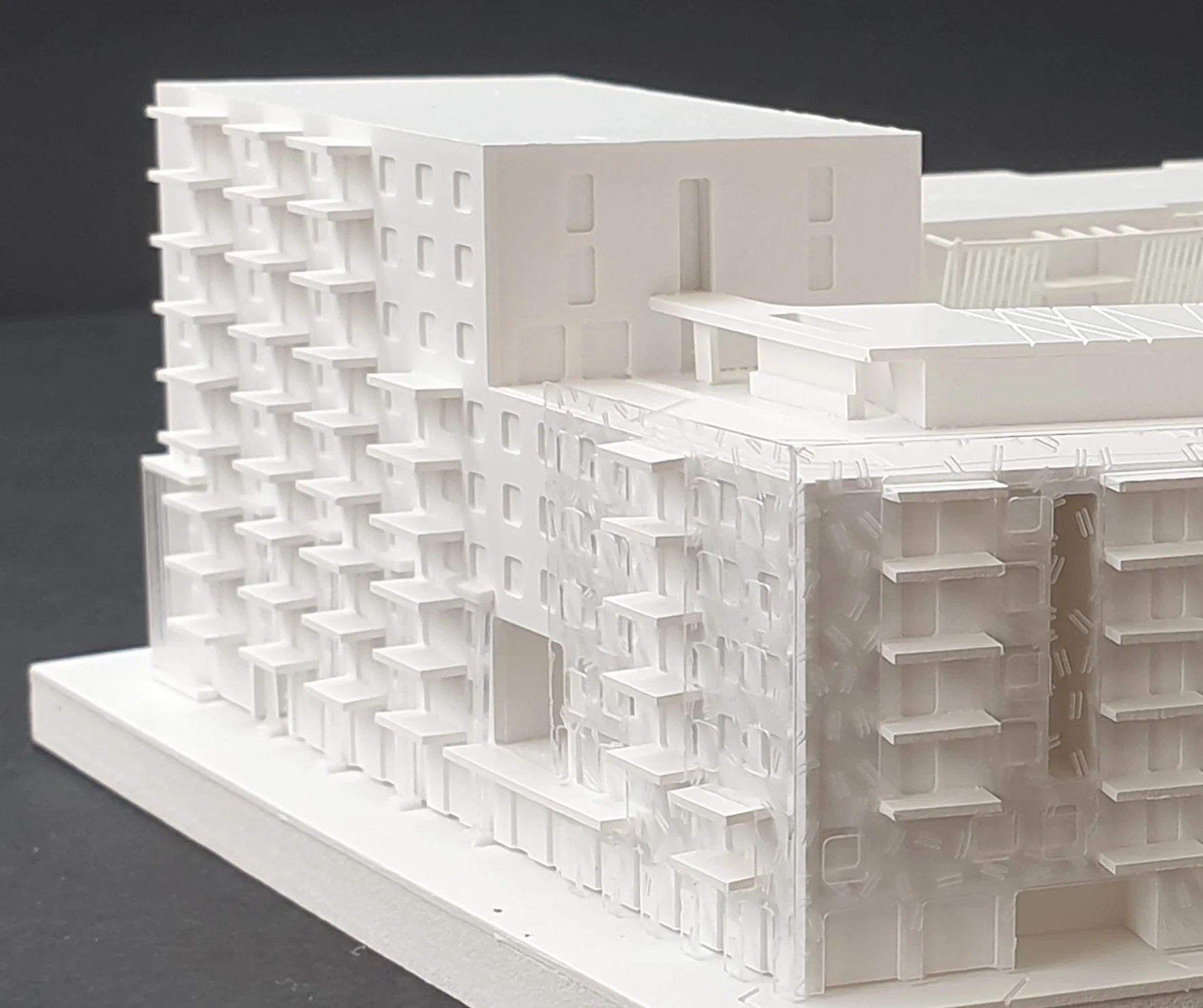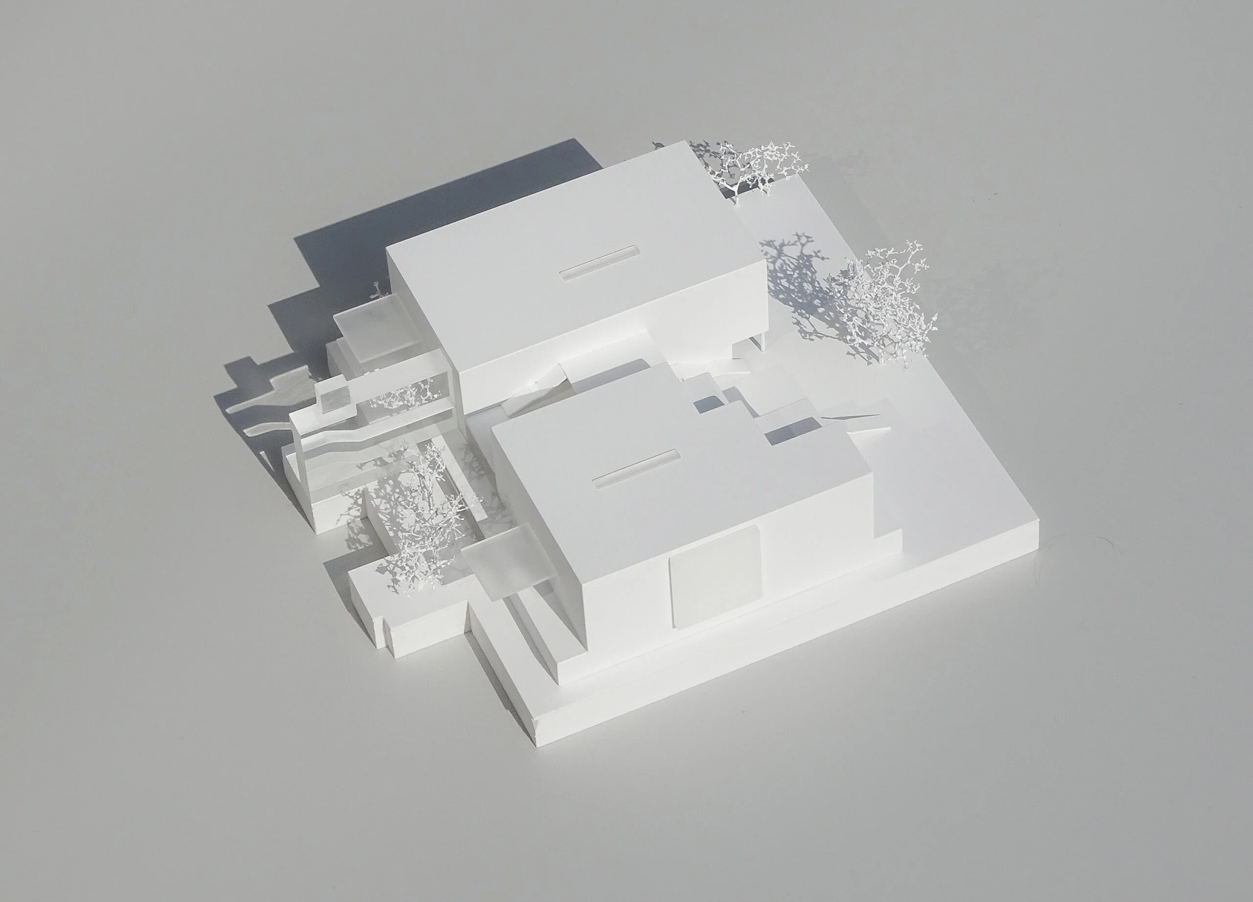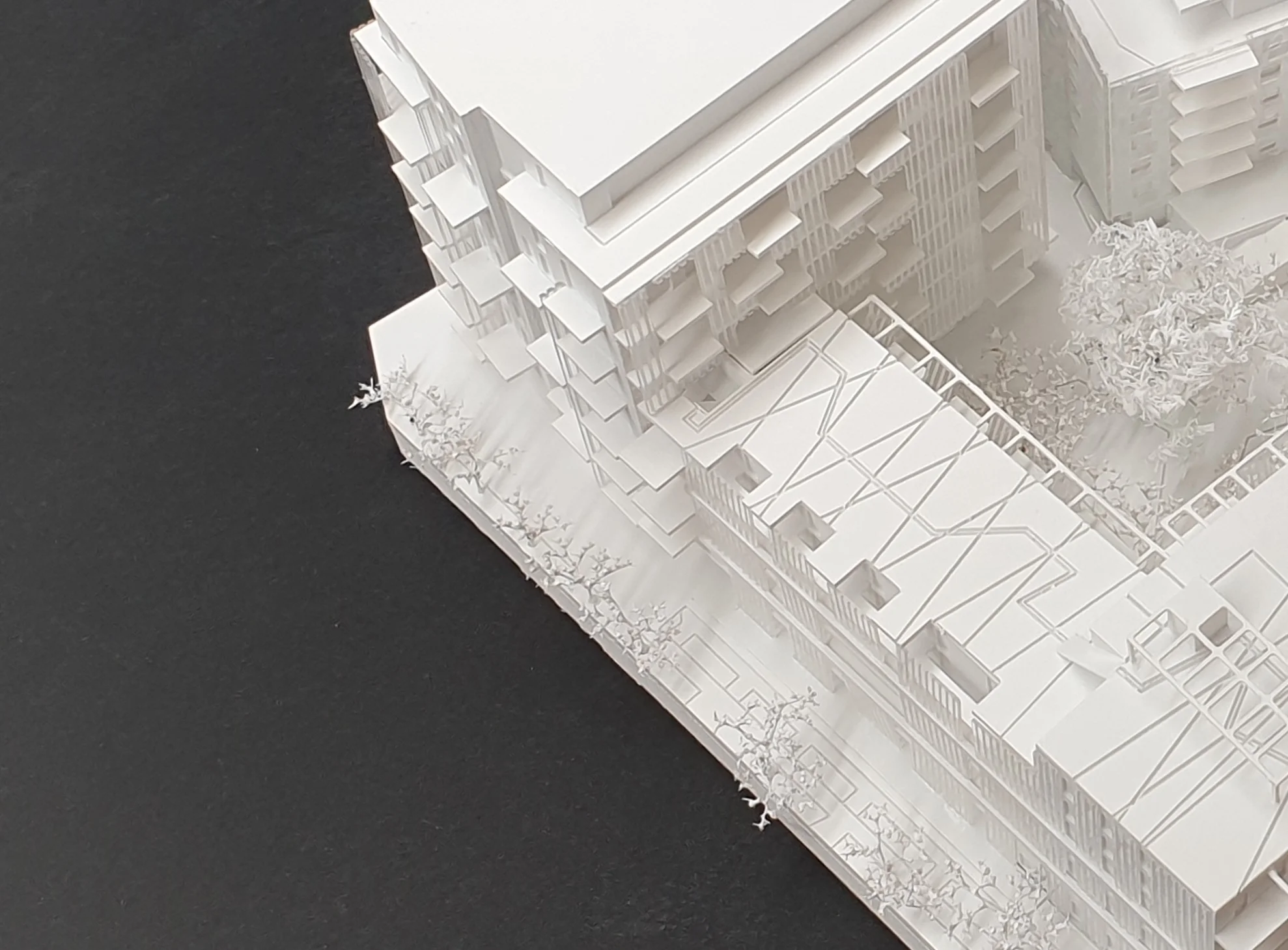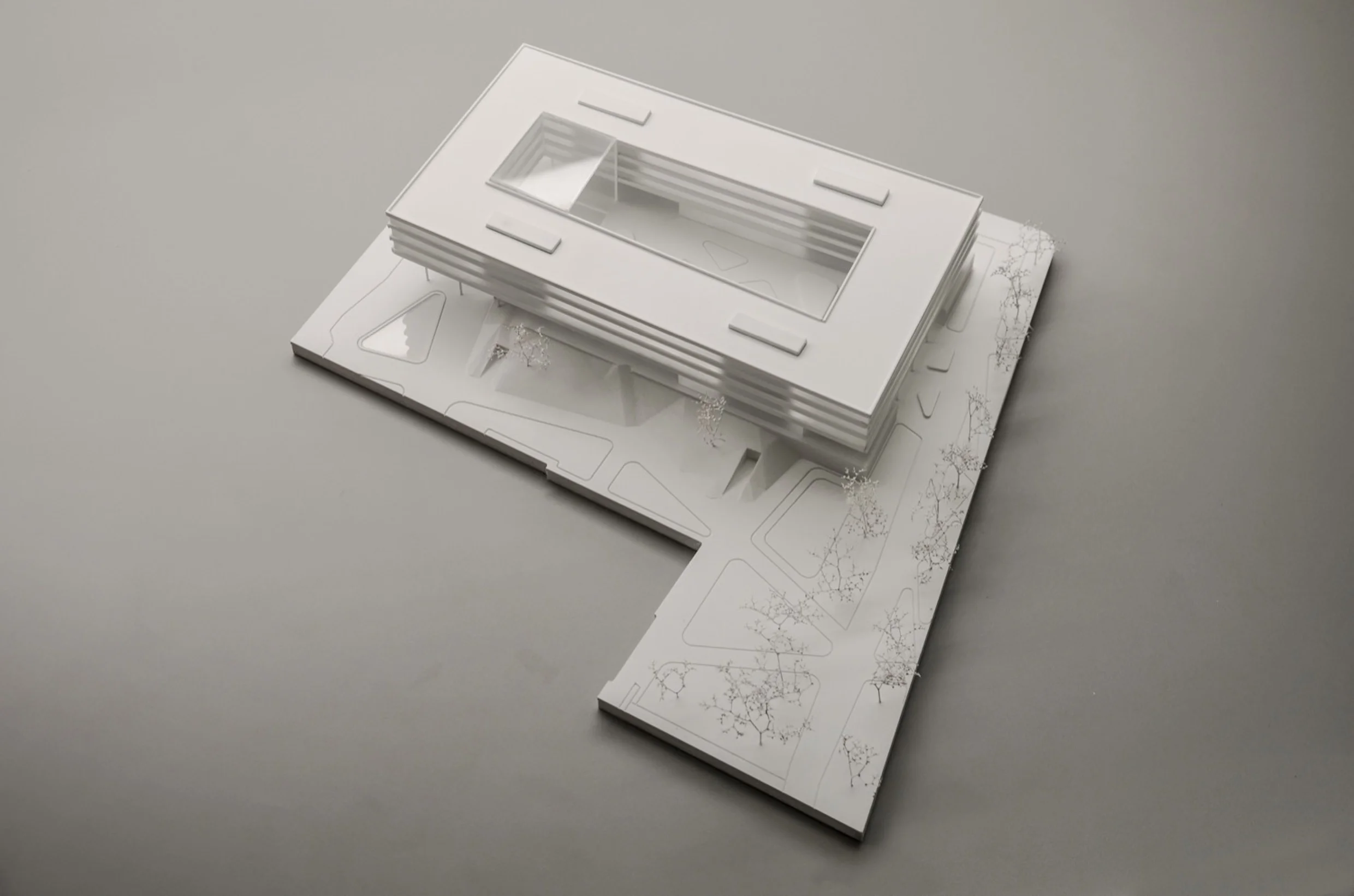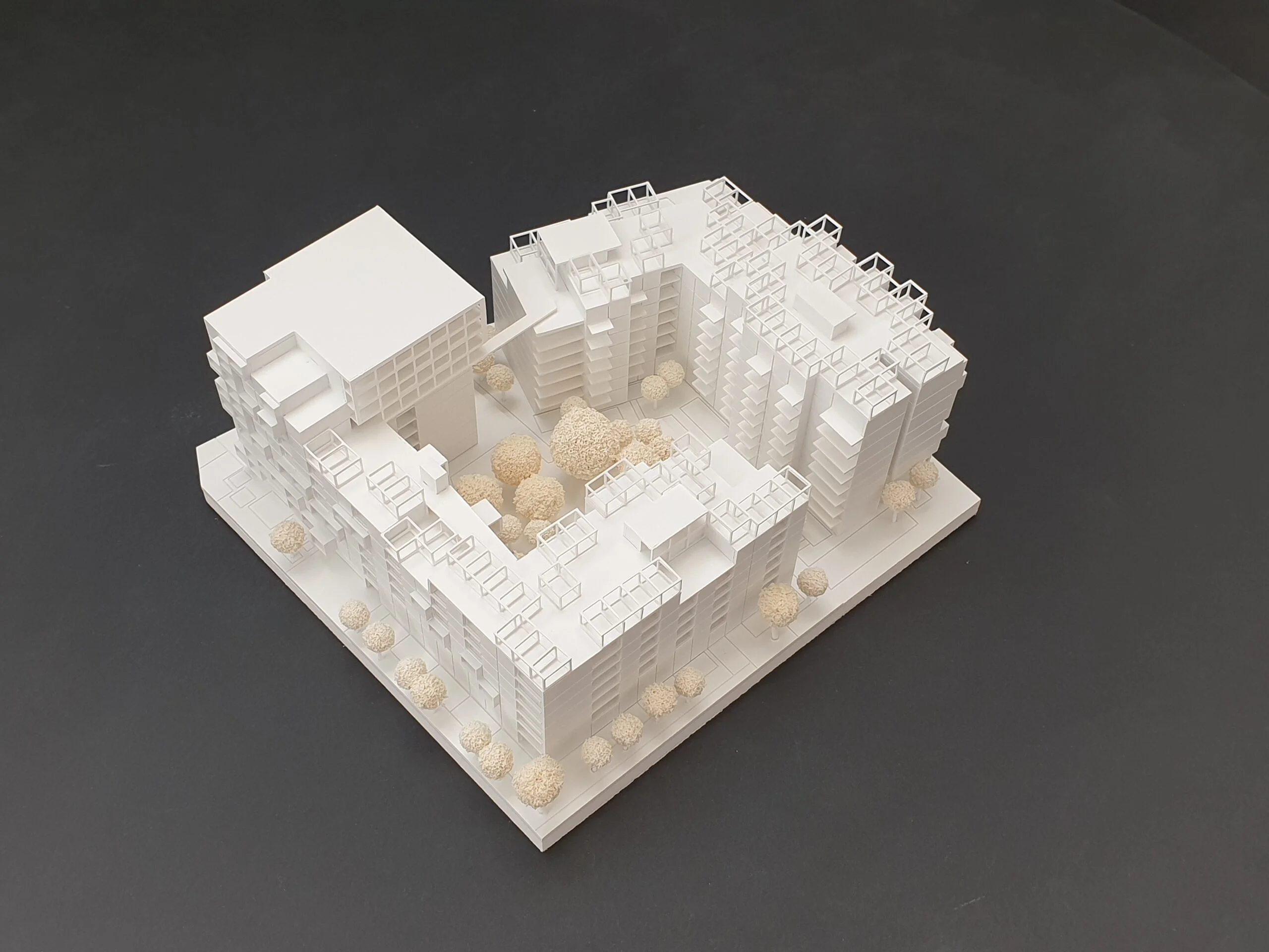 Wettbewerbsmodelle können je nach Zielsetzung reduziert oder stärker detailliert ausgeführt werden. Schon eine präzise Grundform mit klarer Linienführung präsentiert den Entwurf überzeugend und ermöglicht eine schnelle Orientierung – ideal für frühe Bewertungsrunden und anonyme Jurysitzungen. Ein höherer Detaillierungsgrad macht zusätzliche Qualitäten sichtbar: Fassadenrhythmus, Übergänge, Außenräume und Höhenbezüge werden klar lesbar und vermitteln die räumliche Idee noch deutlicher. Das steigert die Wiedererkennbarkeit des Projekts und unterstützt eine starke Positionierung im Wettbewerbsfeld.