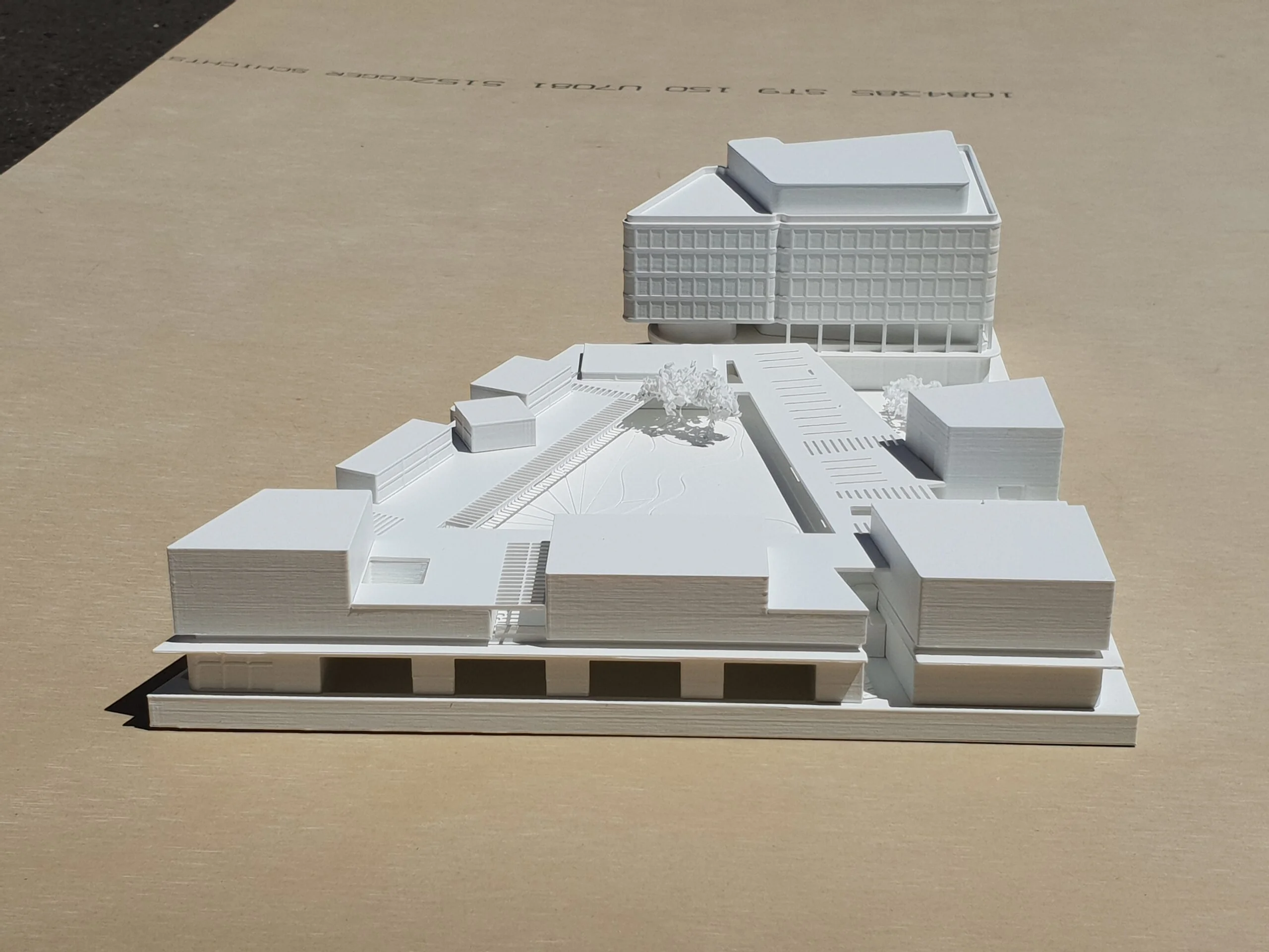 3D-Druck Architekturmodell 1:500 aus weißem Kunststoff, detailgetreu auf Handfläche präsentiert, ideal für Wettbewerbe und Präsentationen. Architekturmodell im 3D-Druck aus weißem Kunststoff, Wohngebäude mit Fassadendetails und Bäumen im Vordergrund, Präsentation auf schwarzem Hintergrund 3D-Druck Architekturmodell aus weißem Kunststoff, modernes Gebäude mit Fassadengerüst, platziert auf dunklem Hintergrund neben Kugelschreiber. Weißes 3D-Druck Modell für Stadtplanung mit aufgedruckten Bäumen und Wegen, zeigt Gebäudevolumen und Freiraumgestaltung. Weißes 3D-Druck Architekturmodell eines Wohnkomplexes mit mehreren Gebäuden und Innenhof, auf hellem Hintergrund präsentiert. Weißes 3D-Druck Modell mit mehreren Baukörpern, städtebauliche Blockstruktur auf rechteckiger Grundplatte, präsentiert auf hellem Hintergrund. Weißes 3D-Druck Architekturmodell mit Pavillonbau, Terrassenflächen und Stufenanlage, ergänzt durch Bäume, auf dunklem Hintergrund. Weißes 3D-Druck Modell eines Gebäudekomplexes mit Innenhof und Platzgestaltung, präsentiert auf hellem Hintergrund. Weißes 3D-Druck Modell mit zwei langen Gebäuden, umgeben von vielen Bäumen, auf heller Grundplatte präsentiert. Weißes 3D-Druck Modell mit vielen Baukörpern und Bäumen, städtebauliches Konzept auf länglicher Grundplatte, präsentiert auf dunklem Hintergrund. Weißes 3D-Druck Architekturmodell eines L-förmigen Gebäudes mit Fassadendetails und Bäumen, präsentiert auf dunklem Hintergrund. Weißes 3D-Druck Modell mit mehreren Wohngebäuden und Bäumen, städtebauliches Konzept einer Wohnanlage auf rechteckiger Grundplatte. Weißes 3D-Druck Modell eines modernen Gebäudes mit abgestufter Kubatur und Fassadendetails, auf dunklem Hintergrund präsentiert. Weißes 3D-Druck Modell mit umfangreicher städtebaulicher Struktur, Gebäuden, Straßen und Bäumen, auf dunklem Hintergrund präsentiert. Weißes 3D-Druck Modell eines Gebäudekomplexes mit mehreren Baukörpern und Bäumen, auf dunklem Hintergrund präsentiert. Weißes 3D-Druck Modell mit mehreren kubischen Baukörpern und Innenhöfen, platziert auf dunklem Hintergrund neben Kugelschreiber. Weißes 3D-Druck Modell mit mehreren Wohngebäuden in Blockstruktur, Fassadengliederung und Bäumen, auf dunklem Hintergrund. Weißes 3D-Druck Modell mehrerer Wohngebäude mit sichtbaren Fassadendetails und Bäumen im Innenhof, auf dunklem Hintergrund. Weißes 3D-Druck Modell eines Wohnblocks mit klarer Fassadengliederung und Innenhof mit Begrünung, auf dunklem Hintergrund präsentiert. Weißes 3D-Druck Modell eines länglichen Gebäudes mit Fassadendetails und Bäumen, auf rechteckiger Grundplatte präsentiert. Weißes 3D-Druck Städtebaumodell mit Gebäuden, Grünflächen und vielen Bäumen, auf rechteckiger Grundplatte präsentiert. Weißes 3D-Druck Modell mit zwei Hochhäusern, Baukörpern und Platzgestaltung, präsentiert auf grauem Hintergrund. Weißes 3D-Druck Modell mit drei Gebäuden und Bäumen, rechteckige Anordnung auf Grundplatte, präsentiert auf dunklem Hintergrund. Weißes 3D-Druck Modell mit mehreren Gebäuden, Straßenführung und Begrünung, präsentiert auf grauem Hintergrund. Weißes 3D-Druck Modell mit vier Hochhäusern und Fassadendetails, zeigt ein modernes Quartier mit Zwischenräumen, auf hellem Hintergrund. Weißes 3D-Druck Modell eines modernen Gebäudes mit klarer Kubatur und farbigen Fassadendetails auf heller Fläche. Weißes 3D-Druck Modell eines modernen Pavillons mit flacher Dachstruktur und transparenter Gestaltung, präsentiert auf schwarzer Fläche. Weißes 3D-Druck Modell eines historischen Gebäudes mit Innenhof, detailreicher Fassadenstruktur, auf rundem Holzsockel. Weißes 3D-Druck Modell eines modernen Gebäudekomplexes mit mehreren Baukörpern und Bäumen, auf rechteckiger Grundplatte. : Weißes 3D-Druck Modell von oben fotografiert, rechteckiges Gebäude mit Innenhofstruktur, auf hellem Hintergrund. Weißes 3D-Druck Modell mit markantem Hochhaus und umliegenden Gebäuden, städtebauliches Konzept auf Grundplatte.